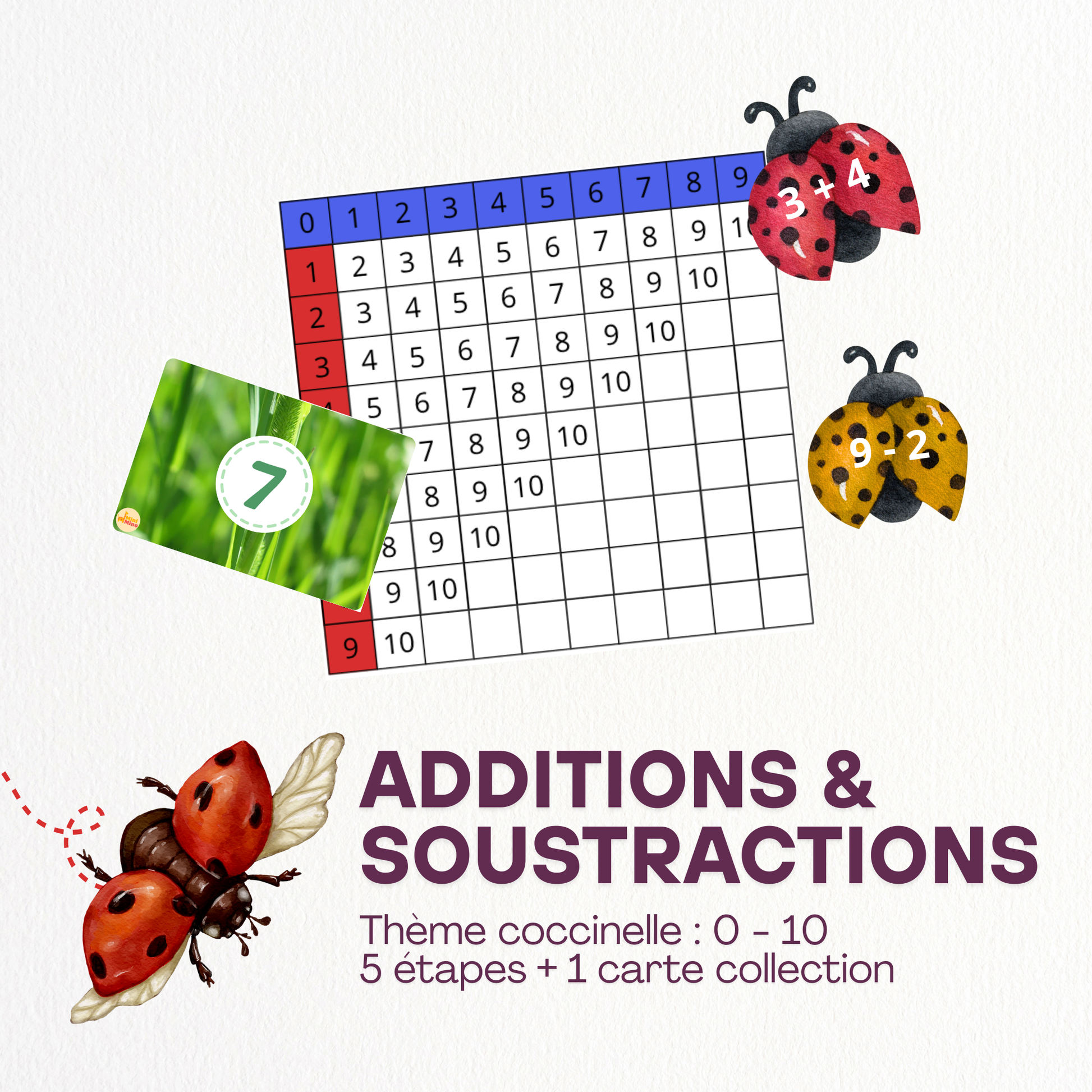 Additions et Soustractions (0-10) – Thème Coccinelle 🐞