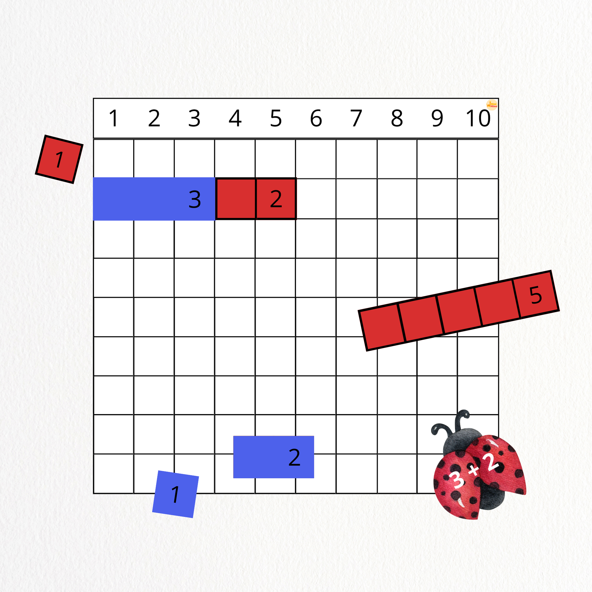 Pour apprendre à additionner à partir d’un nombre donné, en manipulant des barres bleues et rouges. - ➕ La table d’addition