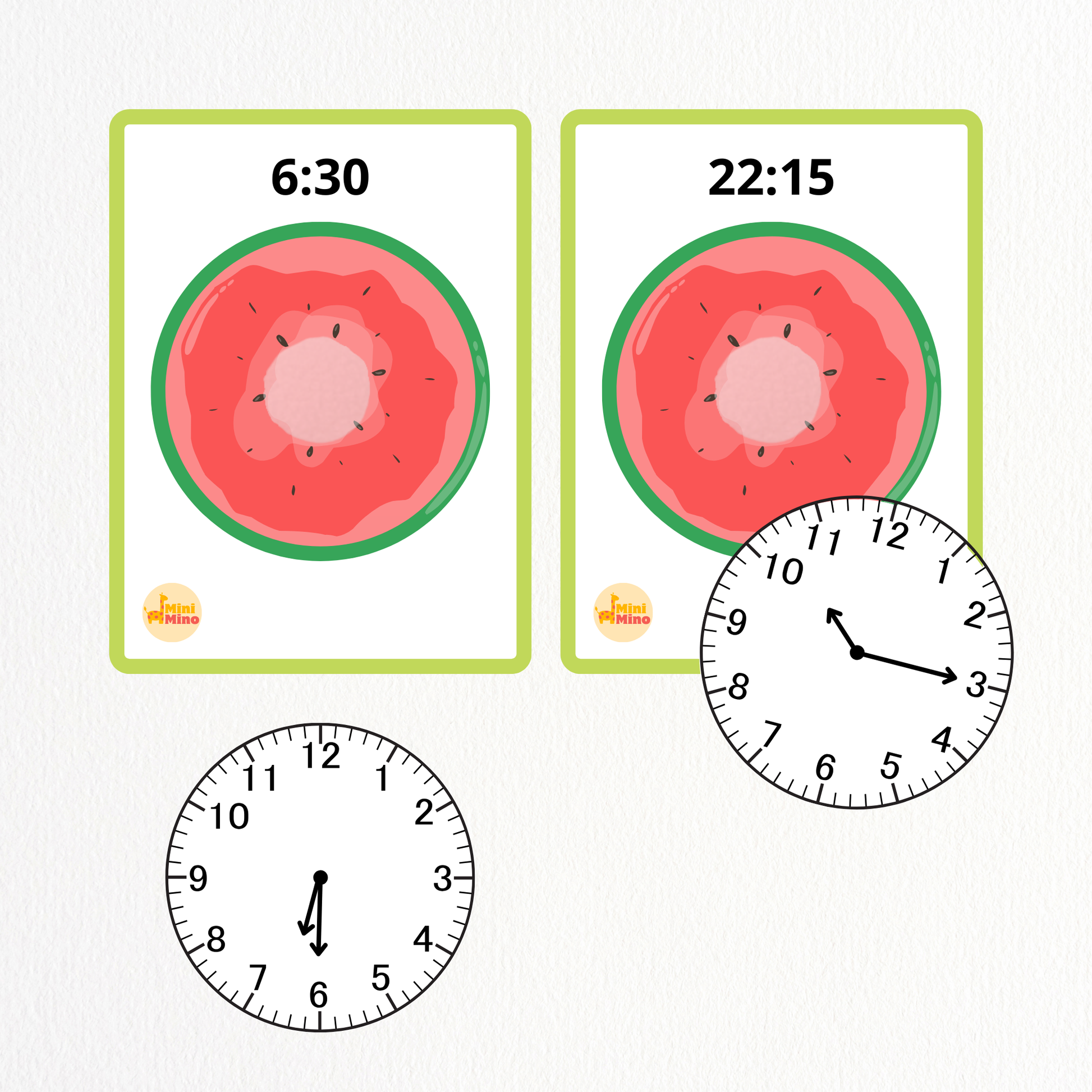 2 formats d’horloge à relier (aiguilles & numérique). Idéal pour commencer à se repérer dans le temps (quart, demi, trois-quart) avec un support simple et visuel.